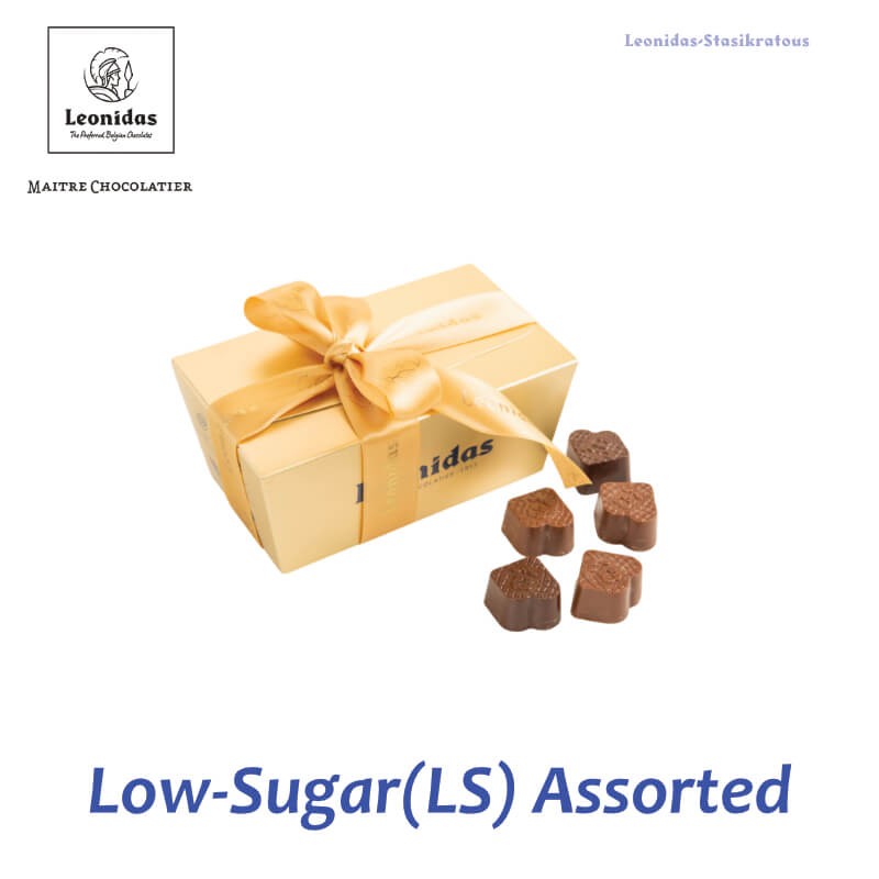 Ποικιλία από σοκολατάκια Leonidas Light-sugar με γέμιση από πραλίνα, συσκευασμένα στο κλασικό κουτί μπαλοτέν Leonidas!